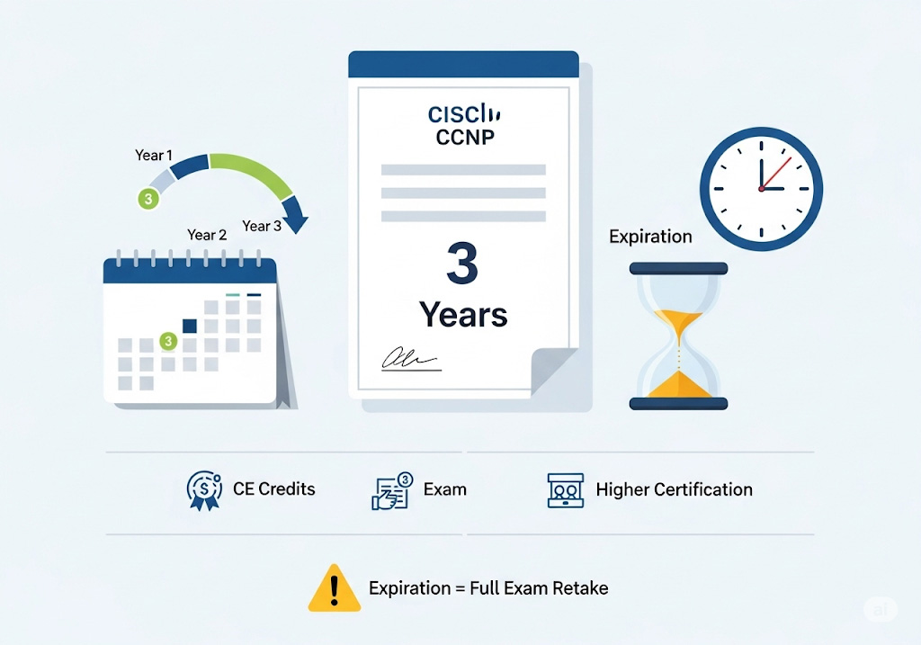 This guide provides a comprehensive overview of the CCNP certification’s validity and the renewal process. It moves beyond the simple three-year answer to explore the specific recertification pathways available, the mechanics of Cisco’s innovative Continuing Education program, and the critical consequences of allowing your hard-earned certification to expire. Understanding these elements is essential for strategically managing your professional credentials and ensuring your expertise remains a valuable asset in the competitive IT landscape.