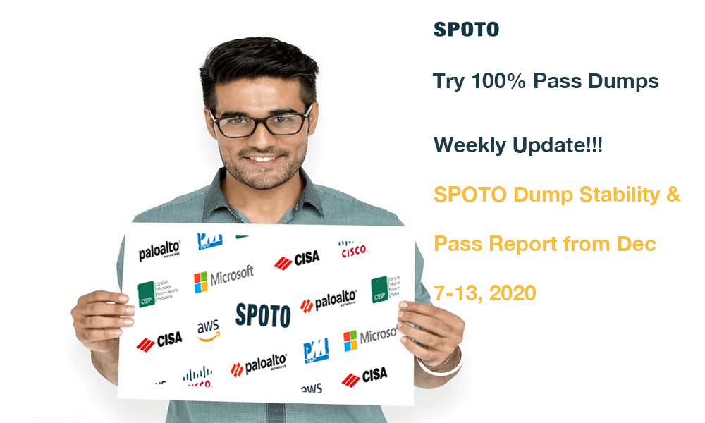 For more detailed information about SPOTO services, this post will tell you the latest SPOTO dump and SPOTO candidate approval reports from Dec 7 to 13th. Get special offers for Christmas Sale now!. You can also download a free exam demo on our website to get a good idea.