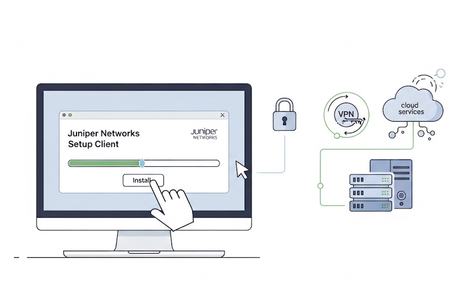 Juniper Networks Setup Client is a lightweight software utility developed by Juniper Networks that automates the deployment of client-side components required for secure remote access to Juniper Secure Access (SSL VPN) infrastructure. It serves as a bootstrap installer: when a user first signs into a Juniper Secure Access gateway via a web portal, the Setup Client downloads and installs all necessary modules—such as Juniper Secure Connect (formerly Network Connect), Host Checker, Secure Application Manager, and optional ActiveX controls—tailored to the user’s operating system and browser environment. By abstracting away manual downloads and individual component installations, the Setup Client ensures a seamless, consistent, and secure end-user experience across Windows, macOS, and Linux platforms.