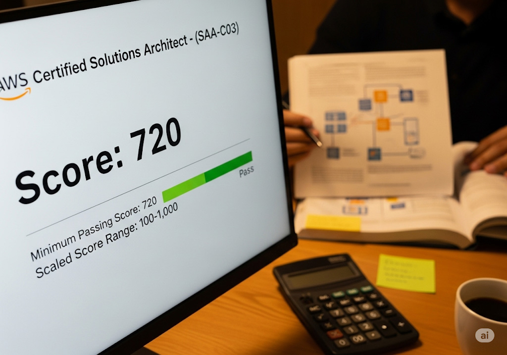 The AWS SAA-C03 exam is scored on a scale of 100 to 1,000, with a minimum passing score of 720. This is a scaled score, not a raw percentage, meaning the number of correct answers needed to pass can vary slightly between different exam versions to account for variations in question difficulty.